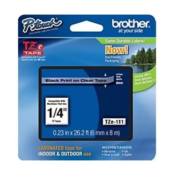 BROTHER TZE111 TAPE 6MM BLK/CLEAR