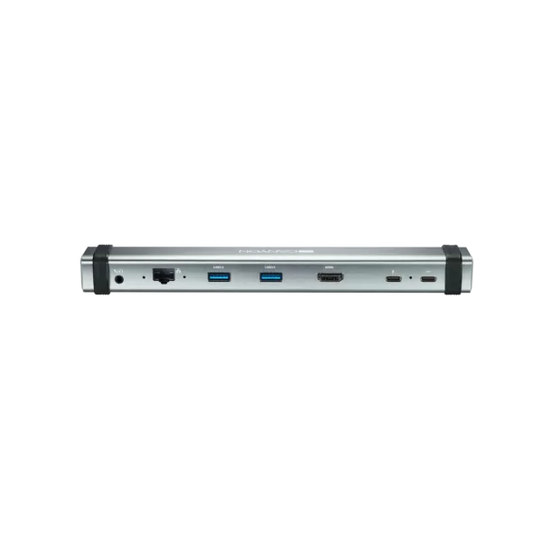 Canyon Multiport Docking Station with 7 ports: 2*Type C+1*HDMI+2*USB3.0+1*RJ45+1*audio 3.5mm, Input 100-240V, Output USB-C PD 5-20V/3A&USB-A 5V/1A, with type c to type c cabel 0.3m, Space gray