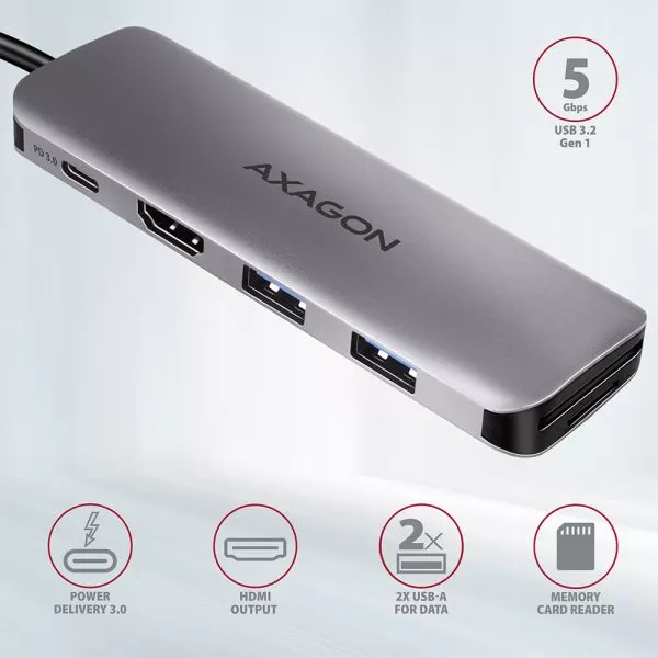 Hub USB Axagon HMC-5, USB-A, 2x USB-A + HDMI + SD/microSD