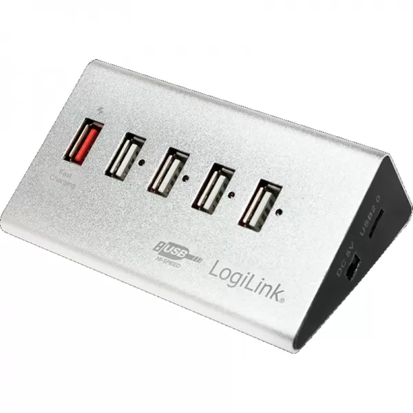 USB 2.0 HUB 4+1 port, aluminum, incl. power supply "UA0224"