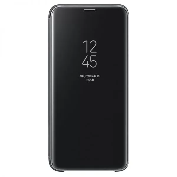 Galaxy S9 (G960F) - Husa Flip tip "Clear View Cover", functie stand - Negru - ușor și convenabil de a vizualiza informațiile de stare: apeluri, mesaje, oră, alarmă și alte notificări fără a deschide capacul - comutare automată și oprirea ecranului prin deschiderea și închiderea capacului - functia stand permite vizionarea de filme in mod convenabil - capacul, de tip flip semi-transparent cu un aspect premium, permite efectuare apeluri si fotografii - design modern pentru față și spate, frumos și senzual - protejează împotriva şocurilor şi zgârieturilor - asigura acces la toate porturile / butoanele telefonului - subliniază designul telefonului Galaxy S9 - accesibilă încărcare wireless Qi - material : Poliuretan (PU), policarbonat (PC)