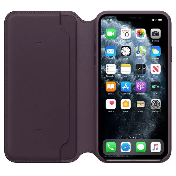 Husa Flip Apple Leather Folio pentru iPhone 11 Pro Max, Aubergine