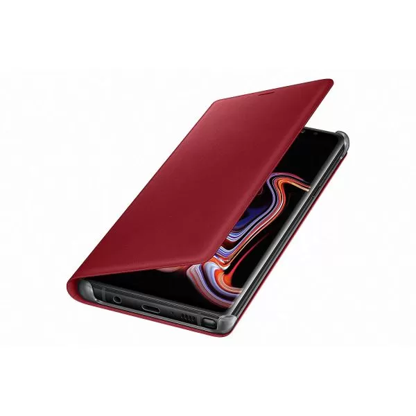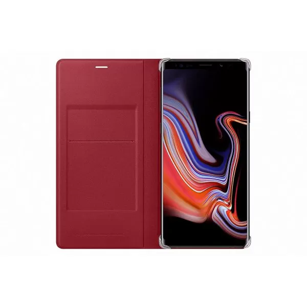 Galaxy Note 9 (N960) - Husa Flip tip "View Cover", piele - Rosu – design elegant, protectie completa – material: piele – interior din microfibra de calitate ridicata – exterior cu colturi intarite pentru o protectie sporita – buzunar interior carte de credit – acces facil la porturile aparatului și la butoanele laterale