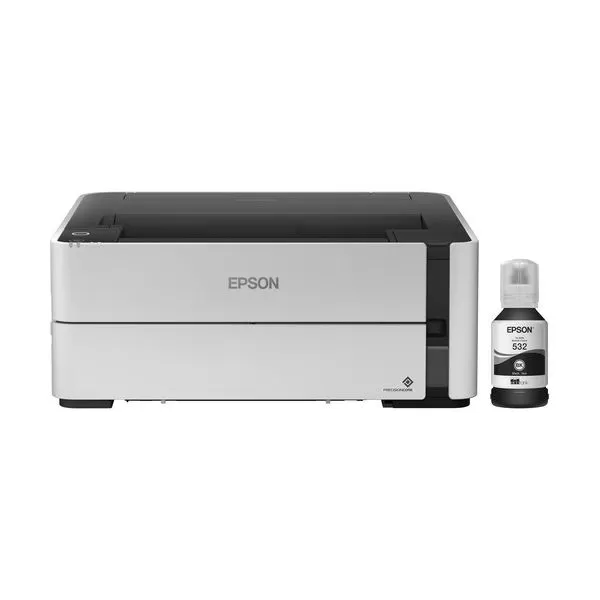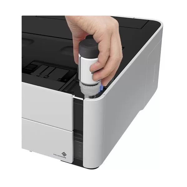 Imprimanta inkjet mono CISS Epson M1170, dimensiune A4, viteza max 39ppm, Duplex, rezolutie printer 1200x2400dpi, alimentare hartie 250 coli, interfata: USB, Ethernet, WiFi, Wi-Fi Direct, consumabile: C13T01L14A, C13T03P14A, C13T04D100, cerneala 11k pagini inclusa, greutate: 4.3 kg.
