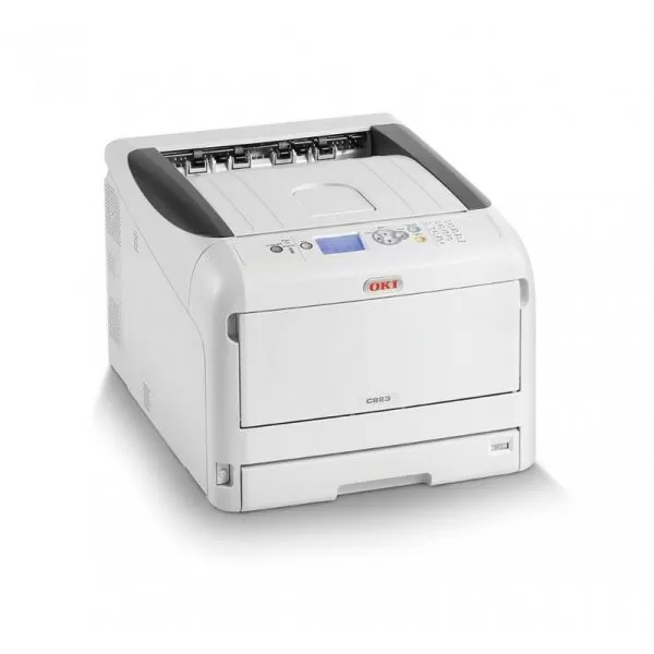 OKI C823n; A3, viteza A4: 23ppm mono/color; A3: 13ppm mono/color, 256 MB RAM (max 768MB, SDHC 16GB), rezolutie ProQ2400 Multi-level Technology, 1200 x 600dpi, fpo 14 sec mono/color, limbaje PCL6 (XL3.0) and PCL5c, SIDM (IBM-PPR, EPSON-FX), XPS, tavi 100+300 coli (max 935 coli), 2 x USB (device, host), GB Ethernet, tonere in-box 2.5k pag, recomandat 1.500 - 5.000 pag/luna, duty cycle max 75.000 pag/luna; consumabile ulterioare : tonere 7k pag (Black: 46471104; Cyan: 46471103; Magenta: 46471102; Yellow: 46471101), tonere 10k pag (Black: 46443104; Cyan: 46443103; Magenta: 46443102; Yellow: 46443101), image drum 30k pag (Cyan: 46438003; Magenta: 46438002; Yellow: 46438001; Black: 46438004), transfer belt 80k pag (44846204), fuser unit 100k pag (44848805); optional : memorie 256MB (01182907), 512MB (01182908), SD HC 16GB (44848903), tava 535 coli (44713903), cabinet (01321101), piedestal (44853903), duplex (447176030), Wireless LAN Module (45830202,) IC Reader Holder (46539501). Inlocuieste C822n