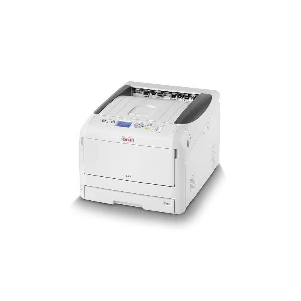 OKI C843dn; A3, viteza A4: 35ppm mono/color; A3: 20ppm mono/color, 512 MB RAM (max 768MB, SDHC 16GB), rezolutie 1200 x 1200dpi, fpo 9.5 sec mono/color, limbaje PCL6 (XL3.0) and PCL5c, PostScript3 emulation, PDF v1.7, SIDM (IBM-PPR, EPSON-FX), XPS, tavi 100+300 coli (max 2.005 coli), duplex, 2 x USB (device, host), GB Ethernet, tonere in-box 2.5k pag, recomandat 1.500 - 5.000 pag/luna, duty cycle max 75.000 pag/luna; consumabile ulterioare : tonere 7k pag (Black: 46471104; Cyan: 46471103; Magenta: 46471102; Yellow: 46471101), tonere 10k pag (Black: 46443104; Cyan: 46443103; Magenta: 46443102; Yellow: 46443101), image drum 30k pag (Cyan: 46438003; Magenta: 46438002; Yellow: 46438001; Black: 46438004), transfer belt 80k pag (44846204), fuser unit 100k pag (44848805); optional : memorie 256MB (01182907), 512MB (01182908), SD HC 16GB (44848903), tava 535 coli (44713903), cabinet (01321101), piedestal (44853903), Wireless LAN Module (45830202,) IC Reader Holder (46539501). Inlocuieste C841dn