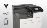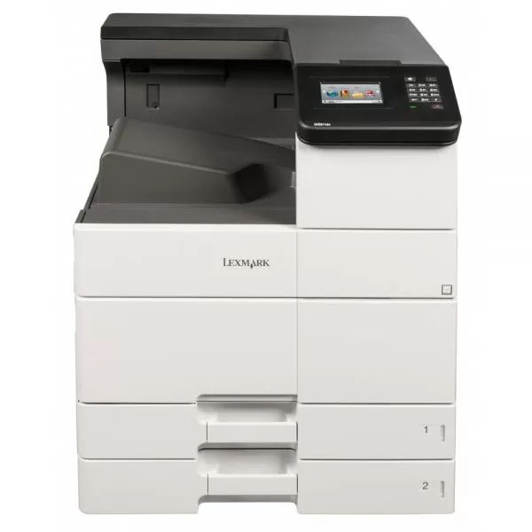 MS911de, A3, viteza 55 pag/min (A4), fpo 5.5 sec, rezolutie 1200x1200dpi, memorie 512MB, max 2560MB, PCL5e, PCL6, PS3, XPS, PPDS, PDF 1.7, AirPrint, tavi 150+2x500 coli (max 6650 coli), duplex, volum recomandat 15.000 - 59.000 pag/luna, duty cycle max 300.000 pag, toner in-box 21k pag, LCD tactil color 10.9cm, USB 2.0, USB front/rear, retea GB; optional : toner 54G0H00 (32.5k), drum 54G0P00 (125k), waste toner box 54G0W00 (90k), tavi 500 coli, 2500 coli, 3000 coli, stand, stapler, stacker, retea wless, port paralel, port RS232C, HDD.