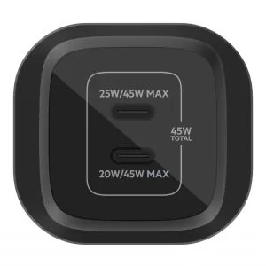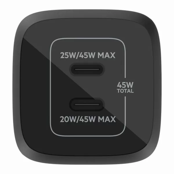 Belkin 45W PD PPS Dual USB-C GaN Charger Universal - Black