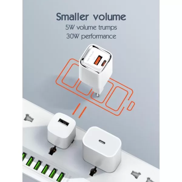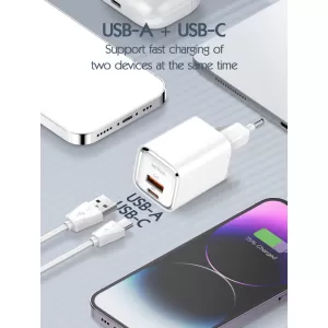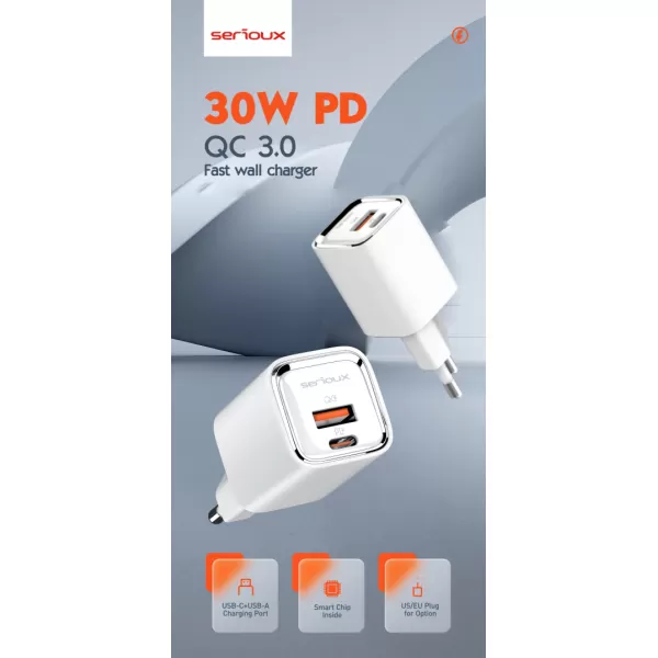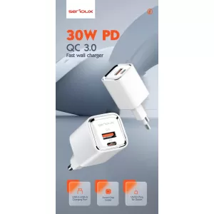 Incarcator retea Serioux QC30W, 30W, Quick Charge, USB-C, USB-A, White