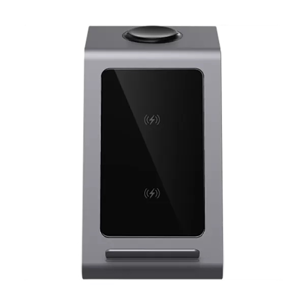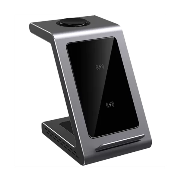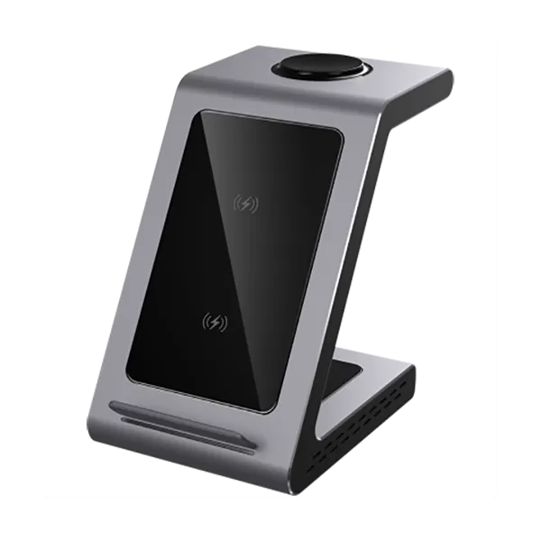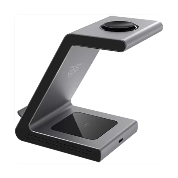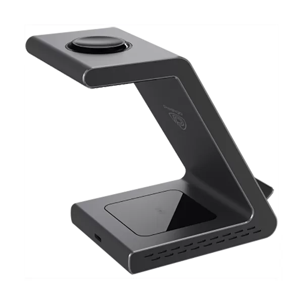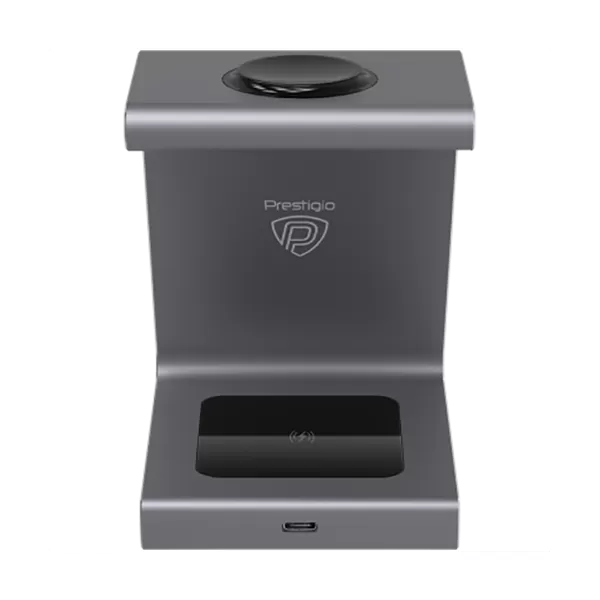 Prestigio ReVolt A8, 3-in-1 wireless charging station for iPhone, Apple Watch, AirPods, wilreless output for phone 7.5W/10W, wireless output for AirPods 5W, wireless output for Apple Watch 2.5W, material: aluminum+tempered glass, space grey color.
