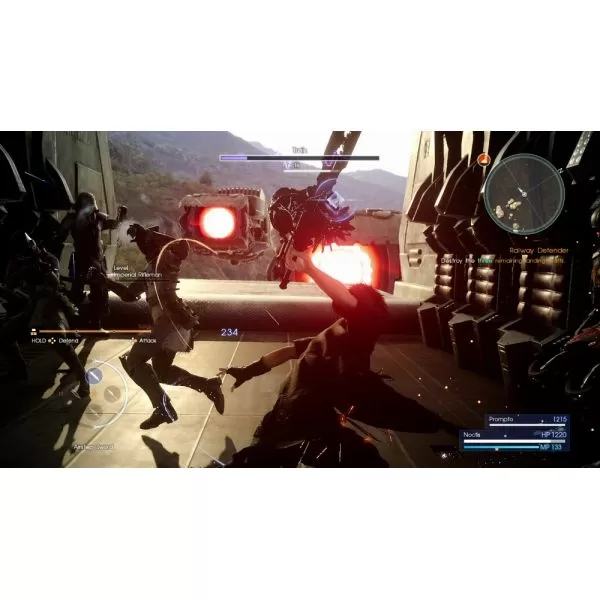 FINAL FANTASY XV este o fantezie inovatoare bazată pe realitate – cu un gameplay revoluţionar, grafică ce induce groază şi tehnologie de ultimă oră. Evadând din flăcările războiului, Noctis, prinţul încoronat al Împărăţiei Lucis, se îmbarca într-o călătorie epică alături de prietenii lui cei mai buni – într-o lume cu bestii de mărimi colosale în care pot fi contemplate minunăţii incredibile şi donjoane pline de pericole, în speranţa dobândirii puterii pentru a se reîntoarce acasă şi pentru a opri lupta. O lume deschisă ce poate fi explorată: În spatele volanului maşinii tale poţi conduce din capitală până pe drumurile lăturalnice sau te poţi aventura pe jos pentru a descoperi un peisaj vast cu viaţă sălbatică abundentă, caverne adânci şi periculoase, cu bogaţii antice şi oraşe realiste pline de noi aventuri. O Poveste a Frăţiei: în rolul lui Noctis, jucătorii vor simţi cum legăturile prieteniei devin mai puternice pe măsură ce tu şi gaşca ta veţi deveni mai apropiaţi pe parcurs. Realizează mişcări cooperative puternice în lupta şi bucură-te de munca în echipa expuse de Noctis şi prietenii săi. Lupte pline de acţiune: Personalizează-ţi sortimentul de arme şi foloseşte talentele originale ale fiecărui personaj într-un sistem de lupta ce are loc în timp real. Proiectează în jurul câmpului de bătălie abordând lovituri tactice, mişcări speciale şi apelează la vrăji puternice.