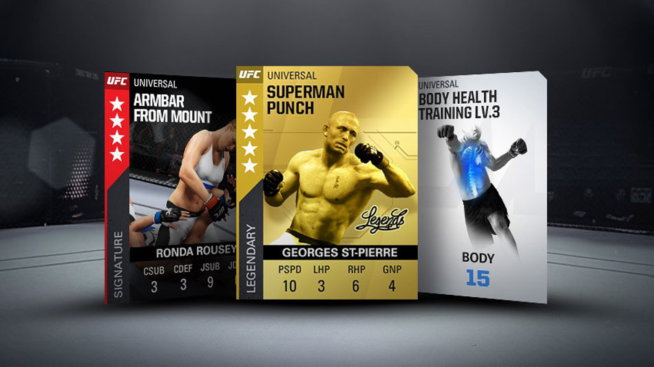 Creeaza-ti propria echipa, formata din pana la cinci luptatori, cu ajutorul optiunilor de personalizare din UFC 2. Concureaza in competitii online si offline pentru a-ti dezvolta luptatorii si castiga monede care ofera acces la pachete de obiecte speciale, pe care le poti utiliza pentru a crea cea mai exploziva echipa din UFC.