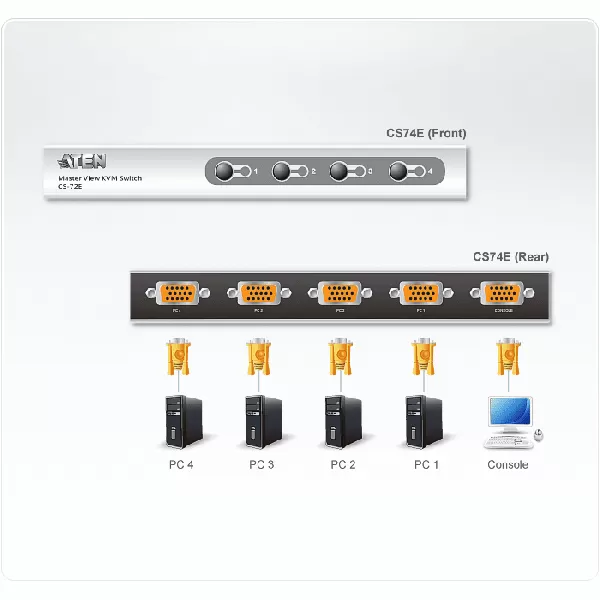 | Nume produs | ATEN CS74E 4-Port PS/2 KVM Switch, 4x Cables (1.2m/1.8m, 50cm con.) Non-powered |