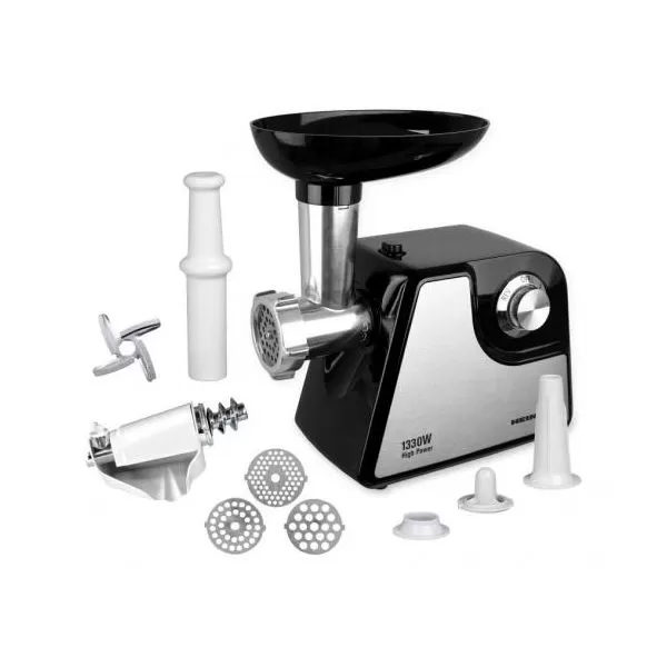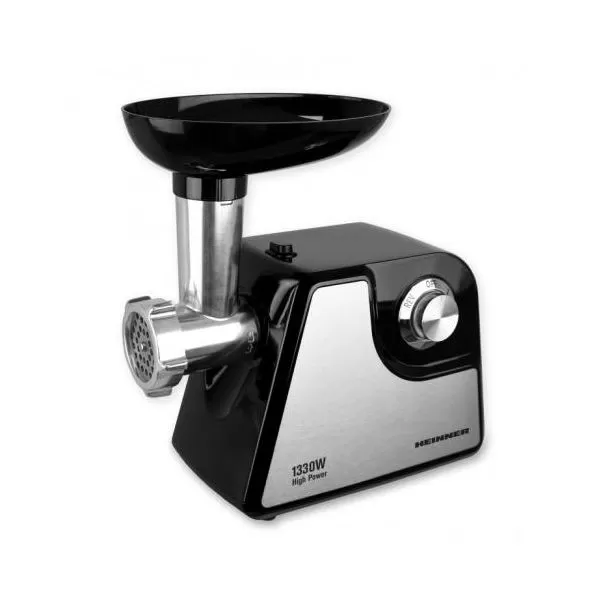 Masina de tocat Heinner MG-1330BKIX, putere maxima: 1330W, capacitate de tocare: 1.5 kg/min, accesoriu pentru rosii, cutit din inox, 3 site de taiere,accesorii pentru carnati si kibbe, functie Reverse, nivel de zgomot: 85 dB