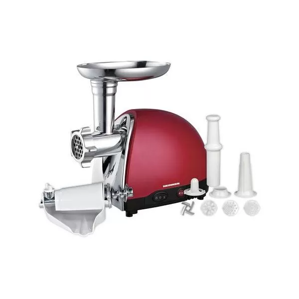 Masina de tocat Heinner MG1500TA-red, accesoriu pentru rosii, putere maxima: 1500W, functie reverse, accesoriu pentru carnati, trei site de taiere, cutit din inox