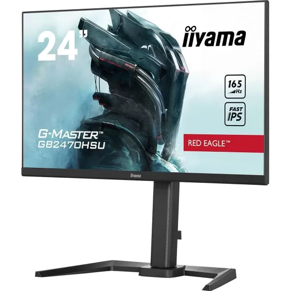IIYAMA Monitor 24" ETE Fast IPS Gaming, G-Master Red Eagle, FreeSync Premium, 1920x1080@165Hz, 250cd/m², 1100:1, HDMI, DisplayPort, 0,8ms (MPRT), Speakers, USB-HUB (2x2.0), Black Tuner, 15cm Height Adj. Stand