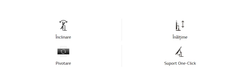 Suportul One-Click ofera o instalare mai usoara, care nu necesita niciun alt echipament, si flexibilitatea unui reglaj al inclinarii, inaltimii si rotirii ecranului pentru a atinge pozitia optima pentru tine.
