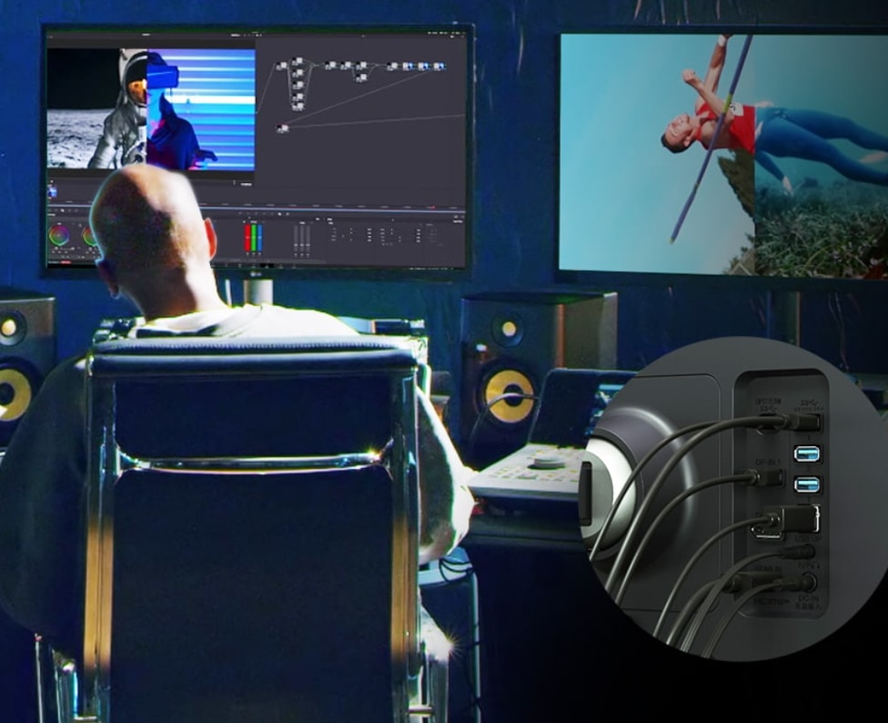 LG UltraFine™ OLED Pro ofera configuratia ideala a statiei de lucru pentru tehnologia vizuala.
