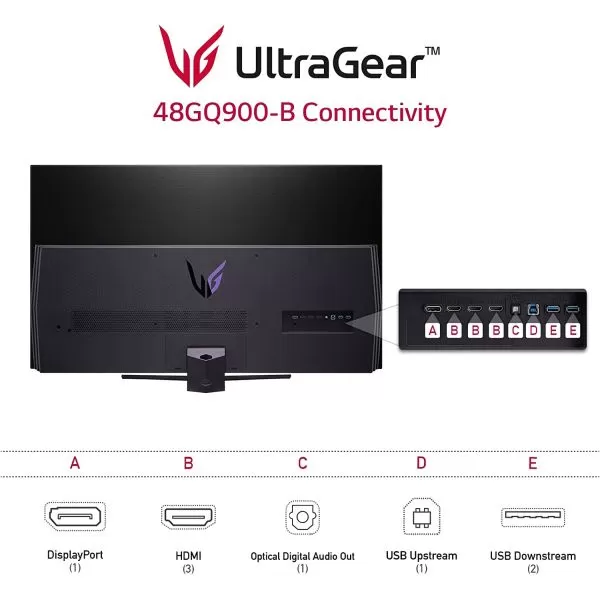 Monitor 47.5" 48GQ900-B, OLED, 4K UHD 3840* 2160, 16:9, 0.1 ms, 120 Hz, 135 cd/ mp, 178/ 178, HDMI, DP, Headphone Out, USB Up-stream, USB Down- stream, SPDIF out, G-SYNC Compatible, AMD FreeSync™ Premium, HDR10, boxe 2* 20W, VESA 300* 200, culoare negru