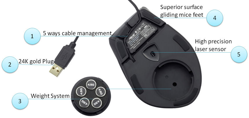 Sistem de management al cablurilor pe 5 direcțiiAjustează direcția cablului mouse-ului în funcție de necesitățile de utilizare |