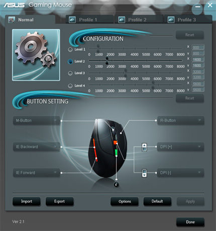 1. Până la 3 profiluri suportând diverse scenarii de utilizare în jocuri2. Funcții macro înregistrate și atribuite butoanelor