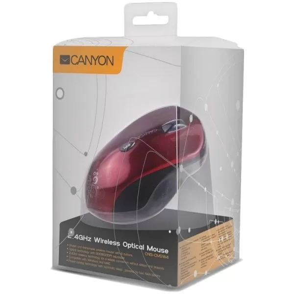 Mouse Canyon CNS-CMSW4 (Wireless, Optical 800/1280 dpi, 6 btn, USB, power saving technology), Red