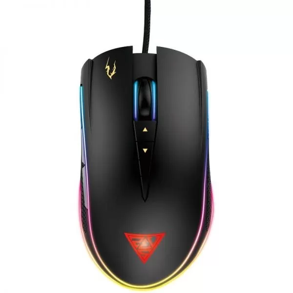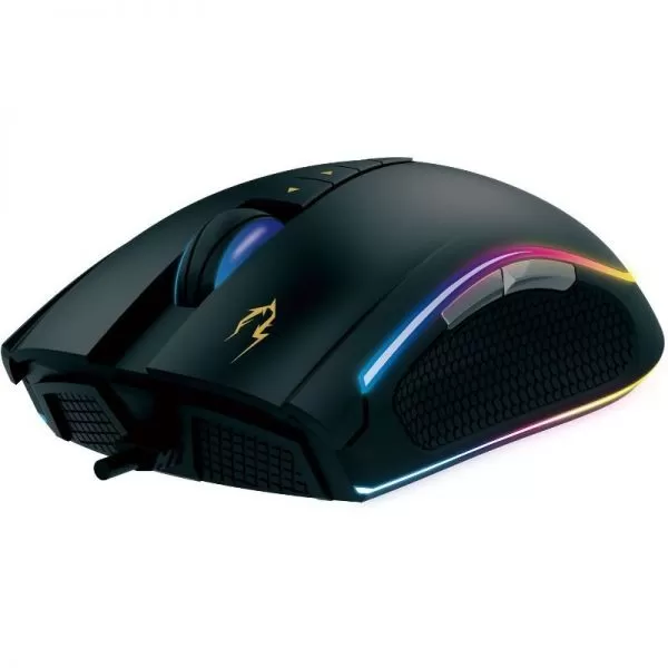 Mouse gaming Gamdias Zeus P1 iluminare RGB, mouse optic cu fir, iluminare LED RGB (16.8 milioane de culori), 12000 DPI (1600/2400/5600/8200/10800/12000 DPI), polling rate: 1000Hz, durata de viata micro-switch-uri: 20 de milioane de click-uri, numar butoane: 8 (programabile cu ajutorul soft-ului GAMDIAS HERA), benzi laterale din cauciuc pentru o priza mai buna, design ambidextru, lungime cablu: 1.8m, dimensiuni: 127.26x72.45x40.85mm, greutate: 125g
