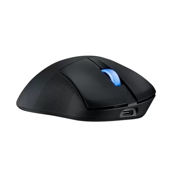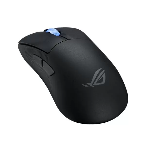 Mouse gaming wireless bluetooth si cu fir ASUS ROG Keris II negru iluminare RGB, 42000 DPI, acceleratie 50G, 750IPS, polling rate: 4000Hz, senzor ROG AimPoint Pro, numar butoane: 8, micro switch-uri ROG, include program pentru configurare (macro-uri, profile, mod iluminare, etc.), pachetul contine 1 set de picioruse din teflon de schimb si extender pentru dongle-ul USB, compatibil Asus Aura Sync, dongle USB, cablu detasabil ROG Paracord, lungime cablu: 2m, dimensiuni: 121x67x42mm, greutate: 54g