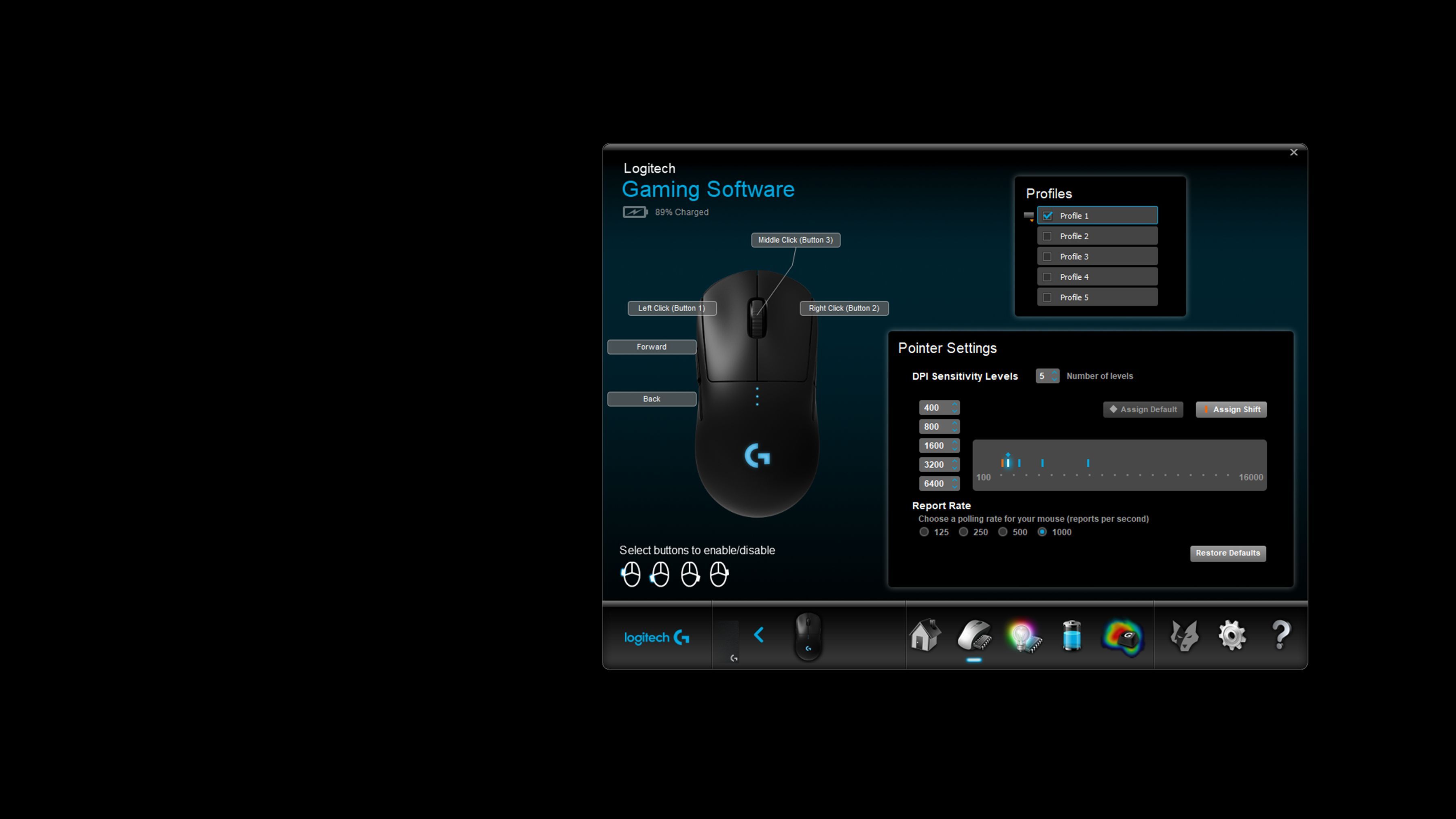 Mouse-ul pentru jocuri wireless de la Logitech G PRO poate fi utilizat cu setarile prestabilite ale butoanelor sau poate fi complet configurat in functie de preferintele dvs. personalizate folosind software-ul Logitech Gaming Software (LGS). Toate cele sase butoane pot fi legate pentru a activa comenzile din joc si multe altele.