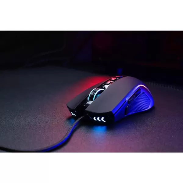 Mouse gaming Redragon Lonewolf 2 negru iluminare RGB, 32000 DPI, polling rate: 1000Hz, acceleratie: 40G, switch-uri Omron, numar butoane mouse: 10 programabile, se pot memora 5 profile, iluminare LED RGB a mouse-ului (7 moduri de iluminare) , picioruse de teflon, lungime cablu mouse: 1.8m, dimensiuni: 129x67.5x40.5mm, greutate: 166g (incluzand o greutate de 9.4g), USB