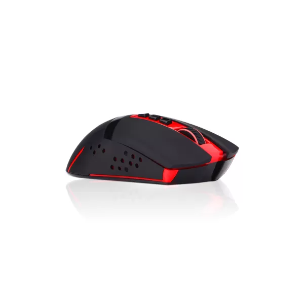 Redragon Blade Wireless Gaming Mouse Black, 4800 DPI, iluminare LED rosie programabila, polling rate: 500Hz, acceleratie: 30G, numar butoane: 9 (8 programabile), picioruse de teflon, dimensiuni: 125.6 x 74 x 41mm, greutate: 91g, USB