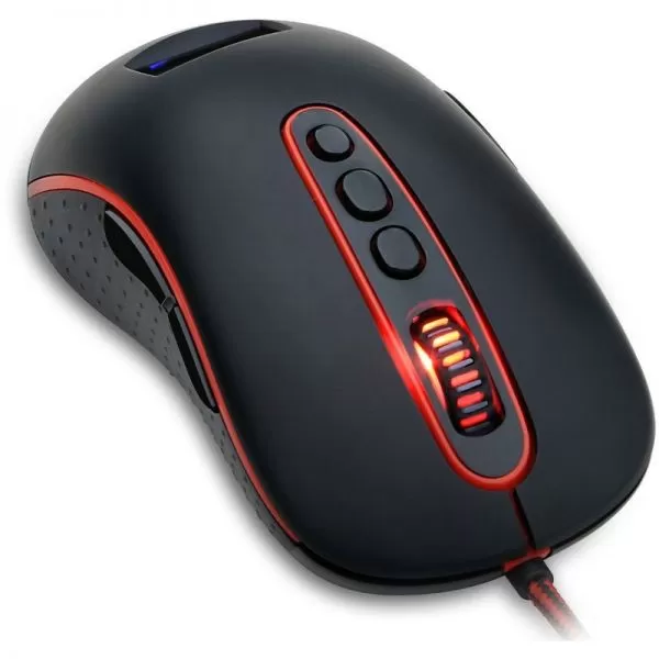 Redragon Mars, 4000 DPI, 6600 FPS, acceleratie 20G, polling rate: 1000Hz, senzor Avago, micro switch-uri gaming Omron, numar butoane: 11 (9 programabile), 5 moduri de iluminare (16 milioana de culori disponibile), display LCD pentru a vizualiza diverse informatii de stare, include program pentru configurare (macro-uri, profile, mod iluminare, etc.), picioruse de teflon, conector USB placat cu aur, lungime cablu: 1.8m, dimensiuni: 126x67x39mm, greutate: 160g, USB