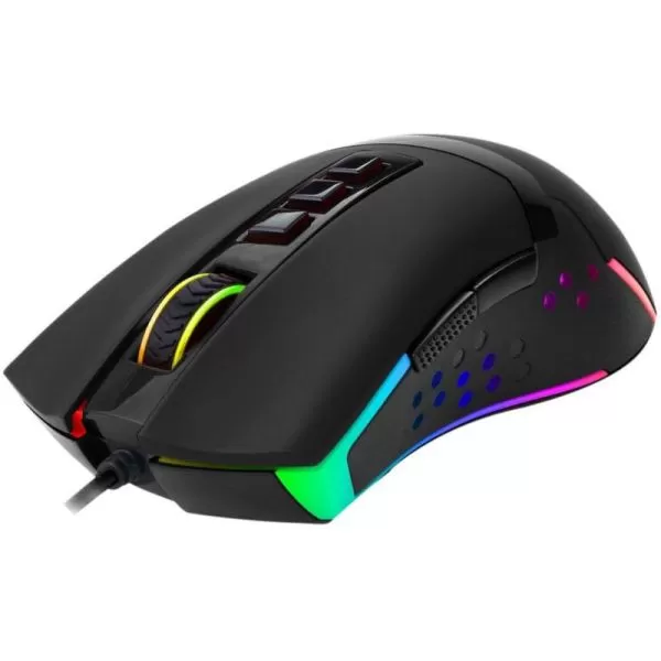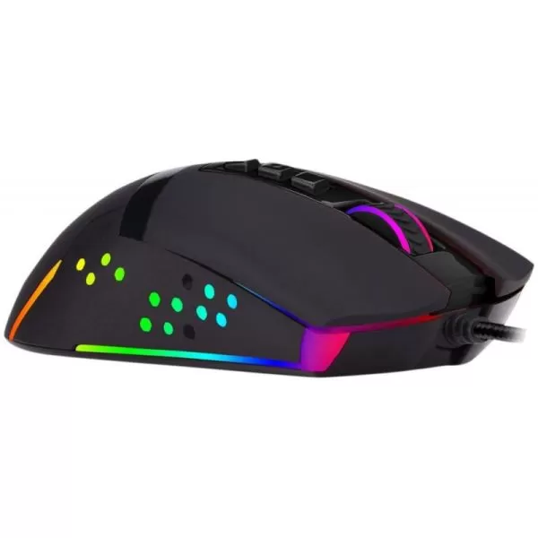 Mouse gaming Redragon Octopus negru iluminare RGB, 10000 DPI (1000/2000/3000/5000/5000/10000 DPI), pooling rate: 125/250/500/1000Hz, acceleratie 20G, numar butoane mouse: 9 (8 programabile), iluminare LED RGB a mouse-ului cu 12 moduri, picioruse de teflon, lungime cablu mouse: 1.8m, conector: USB placat cu aur, dimensiuni: 125.7x65x41.5mm, greutate: 150g