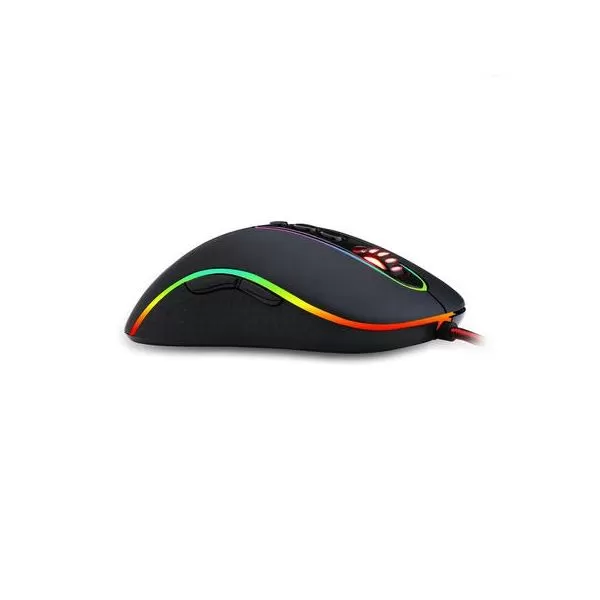 Redragon Phoenix RGB, 10000 DPI, 4000FPS, acceleratie 20G, polling rate: 1000/500/250/125Hz, senzor Pixart PMW3325DB, micro switch-uri Omron (durata de viata: 20 milioana click-uri), numar butoane: 11 (9 programabile), 5 moduri de iluminare (16 milioane de culori disponibile), include program pentru configurare (macro-uri, profile, mod iluminare, etc.), picioruse de teflon, conector USB placat cu aur, lungime cablu: 1.8m