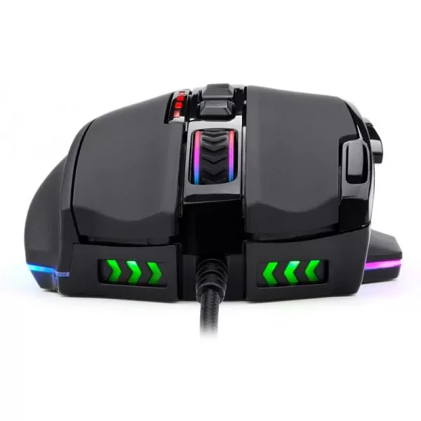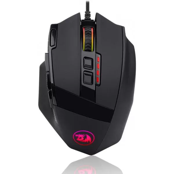 Mouse gaming Redragon Sniper ilumanare RGB negru, 12400 DPI, acceleratie 30G, micro switch-uri Omron (durata de viata: 5 milioane click-uri), numar butoane: 9 (9 programabile), 5 moduri de iluminare (16 milioane de culori disponibile), include program pentru configurare (macro-uri, profile, mod iluminare, etc.), picioruse de teflon, conector USB placat cu aur, lungime cablu: 1.8m, dimensiuni: 121x81x41mm, greutate: 161g (incluzand greutati 2.4g x 8 bucati), USB