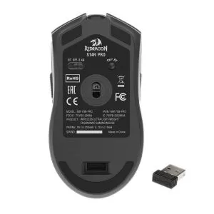 Mouse gaming wireless bluetooth si cu fir Redragon St4r Pro negru cu gri, 26000 DPI, senzor optic, numar butoane: 6 (6 programabile), micro switch-uri Huano, design ergonomic, baterie: 400mAh, dongle USB, lungime cablu: 1.8m, picioare de teflon, receiver USB, dimensiuni: 126x64x40mm, greutate: 63g