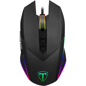Mouse gaming T-Dagger Lieutenant negru, 8000 DPI, 1000Hz, 20G acceleratie, numar butoane mouse: 8 (7 programabile), iluminare LED RGB a mouse-ului, picioruse de teflon, cablu imbracat in material textil, lungime cablu mouse: 1.8m, dimensiuni: 128x68x44mm, greutate: 146g, USB