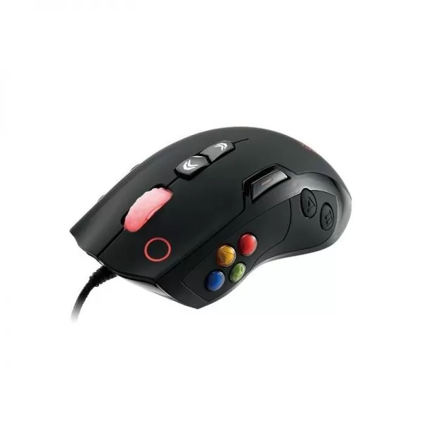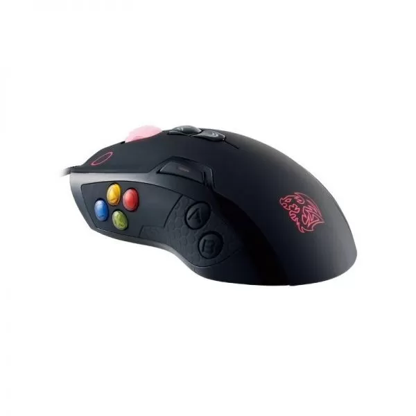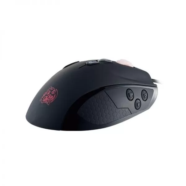Tt eSPORTS VOLOS Black, design special pentru jocuri MOBA/MMORPG, 8200 DPI, senzor laser, numar butoane: 14 (programabile), posibilitatea schimbarii culorii care ilumineaza mouse-ul (16.8 milioane culori disponibile), 4MB memorie on-board (10 profile, 140 macro-uri programabile, salvarea setarilor), switch-uri Omron (durata de viata: 5 milioane click-uri), greutati: 4.5g x7, lungime cablu: 1.8m, picioare de teflon, conector USB placat cu aur, dimensiuni: 129 x 79 x 43mm, USB