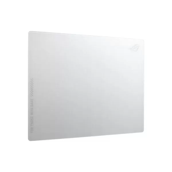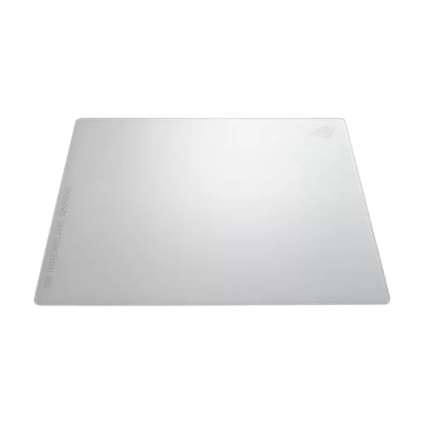 Mousepad gaming ASUS ROG MOONSTONE ACE L, fabricat din sticlă securizată rezistentă, cu o suprafață ultra-lină optimizată pentru alunecări rapide și consistente ale mouse-ului și o bază din silicon anti-alunecare