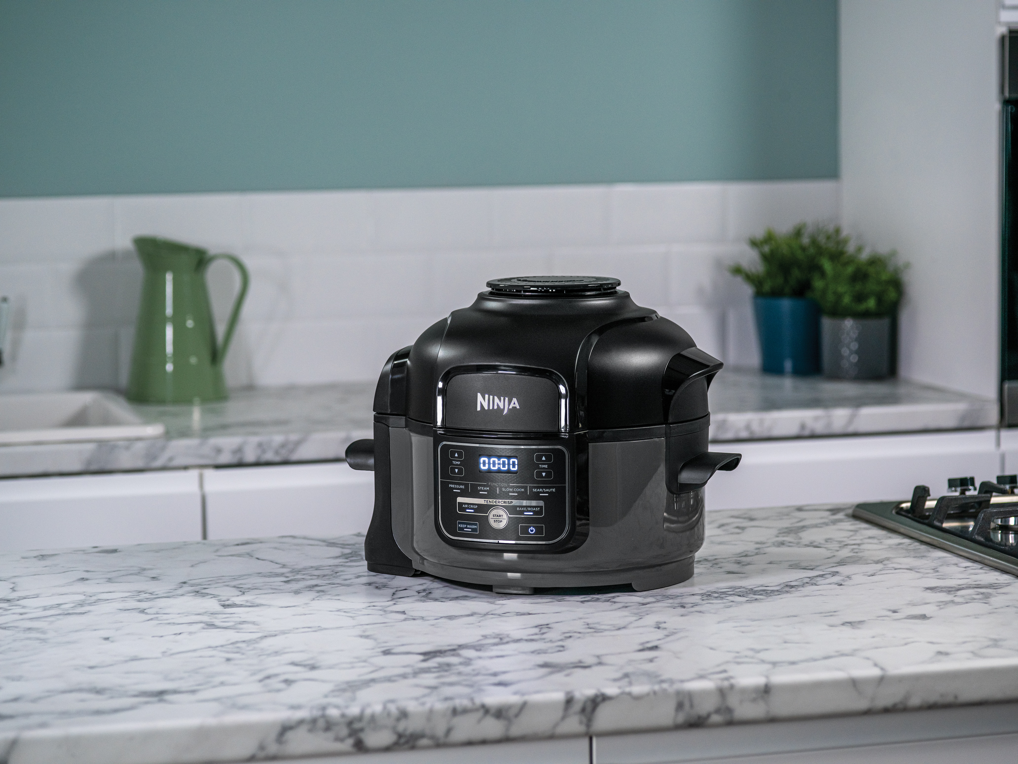 Ninja Foodi MINI combina 6 functii de gatit reglabile intr-un design compact.