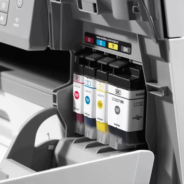 | Consumabile | Hârtie Brother: BP71GLA: hârtie foto lucioasă A4 (20 coli), BP71GLP: 10x15cm hârtie foto lucioasă (20 / 50 coli), BP60MA: hârtie inkjet mată A4 (25 coli), BP60PA: hârtie inkjet A4 (250 coli), BP71GA3: hârtie lucioasă A3 (20 coli), BP60MA3: hârtie inkjet mată A3 (25 coli), BP60PA3: hârtie inkjet simplă A3 (250 coli) Cartuş de cerneală de mare randament: LC3239XL: negru - 6,000 pagini / Cyan, Magenta, Galben - 5,000 pagini Cartuş de cerneală cu randament standard: LC3237: negru - 3,000 pagini / Cyan, Magenta, Galben - 1,500 pagini |
