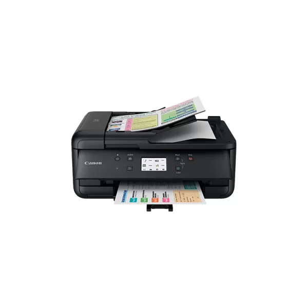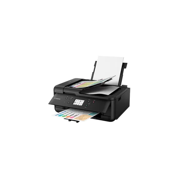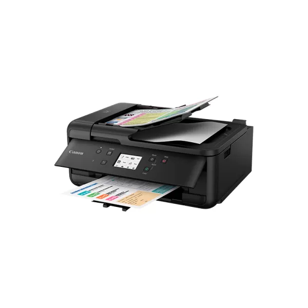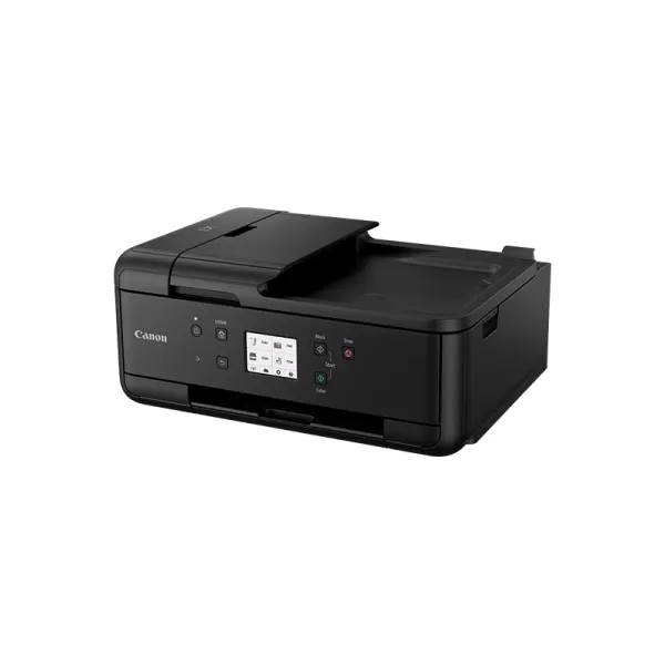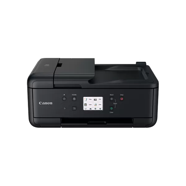 Canon PIXMA TR7550, Multifunctional inkjet color A4 (Print, Copy, Scan, Fax), viteza de imprimare 15 ipm monocrom (3ipm duplex), 10 ipm color, rezolutia de imprimare pana la 4800 X 1200 dpi, alimentare hartie 100 coli, ADF 20 coli, duplex print, greutate hartie acceptata 64-105 g/m2 hartie simpla, pana la 300g/m2 hartie foto Canon, scanner cu suport plat CIS si ADF, rezolutie scanare 1200 X 2400 dpi, viteza scanare A4 15 sec, copiere multipla max 99 exemplare, fco 19 sec, scalare 25 - 400%, fax color Super G3, max 300x300 dpi mono, 200x200 dpi color, memorie max 250 pag, max 100 locatii apelare rapida, LCD TFT color 4.3cm, interfata USB Hi-Speed, Wi-Fi IEEE802.11 b/g/n, Bluetooth (BLE), Wireless Direct, Aplicaţia Canon PRINT, Apple AirPrint, Mopria, Google Cloud Print, Reţea PictBridge wireless, consumabile (5 rezervoare individuale) : standard PGI-580BK, CLI-581BK/C/M/Y, capacitate mare: PGI-580BK XL, CLI-581BK/C/M/Y XL, capacitate extra: PGI-580BK XXL, CLI-581BK/C/M/Y XXL. Inlocuieste MX925