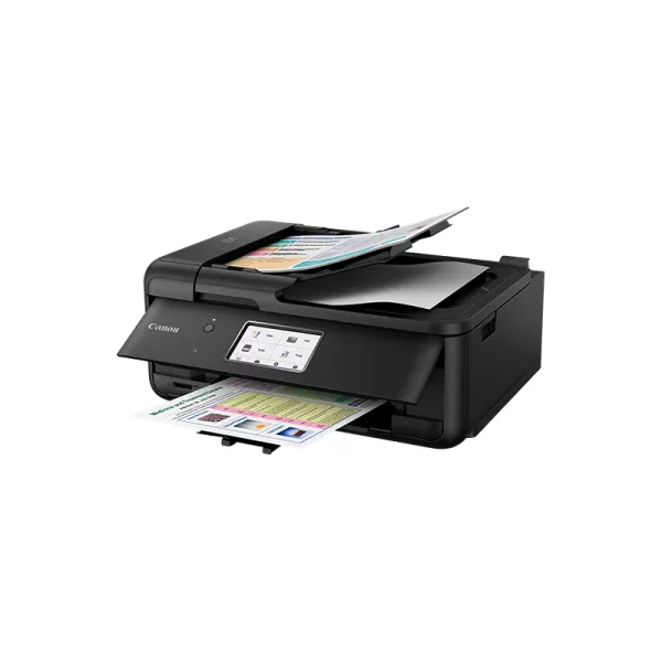Canon PIXMA TR8550, Multifunctional inkjet color A4 (Print, Copy, Scan, Fax), viteza de imprimare 15 ipm monocrom (3ipm duplex), 10 ipm color, rezolutia de imprimare pana la 4800 X 1200 dpi, alimentare hartie 100 coli, ADF 20 coli, duplex print, greutate hartie acceptata 64-105 g/m2 hartie simpla, pana la 300g/m2 hartie foto Canon, scanner cu suport plat CIS si ADF, rezolutie scanare 1200 X 2400 dpi, viteza scanare A4 15 sec, copiere multipla max 99 exemplare, fco 19 sec, scalare 25 - 400%, fax color Super G3, max 300x300 dpi mono, 200x200 dpi color, memorie max 250 pag, max 100 locatii apelare rapida, LCD TFT color tactil 10.8cm, interfata USB Hi-Speed, Ethernet 10/100 Mbps, Wi-Fi IEEE802.11 b/g/n, Bluetooth (BLE), Wireless Direct, Aplicaţia Canon PRINT, Apple AirPrint, Mopria, Google Cloud Print, Wireless şi LAN PictBridge, Direct de pe card (imprimare şi scanare), consumabile (5 rezervoare individuale) : standard PGI-580BK, CLI-581BK/C/M/Y, capacitate mare: PGI-580BK XL, CLI-581BK/C/M/Y XL, capacitate extra: PGI-580BK XXL, CLI-581BK/C/M/Y XXLL. Inlocuieste MX925