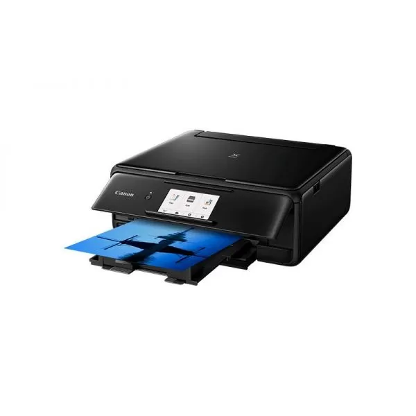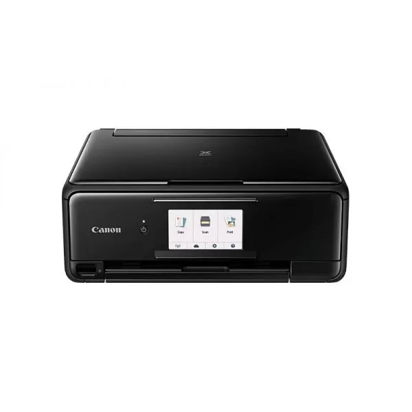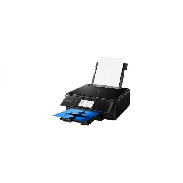 Canon PIXMA TS8150, Multifunctional inkjet color A4 (Print, Copy and Scan), viteza de imprimare 15 ipm monocrom, 10 ipm color, rezolutia de imprimare pana la 4800 X 1200 dpi, alimentare hartie 100 coli, duplex print, greutate hartie acceptata 64-105 g/m2 hartie simpla, pana la 300g/m2 hartie foto Canon, imprimare fara margini, imprimare directa pe disc, scanner cu suport plat CIS, rezolutie scanare 2400 X 4800 dpi, viteza scanare A4 14 sec, copiere multipla max 99 exemplare, fco 19 sec, scalare 25 - 400%, LCD TFT color 10.8cm, interfata USB Hi-Speed, Wi-Fi IEEE802.11 b/g/n, Bluetooth cu consum energetic redus (BLE), Mesaj in aplicatia Print, PIXMA Cloud Link, Aplicatia Canon PRINT Inkjet/SELPHY, Plugin Canon Print Service (Android), Google Cloud Print, Apple AirPrint, Wireless Direct, Mod punct de acces, WLAN PictBridge, Slot pentru card de memorie, Mopria (Android), consumabile (6 rezervoare individuale) : standard PGI-580PGBK, CLI-581BK/C/M/Y/PB, capacitate mare: PGI-580PGBK XL, CLI-581BK/C/M/Y/PB XL, capacitate extra: PGI-580PGBK XXL, CLI-581BK/C/M/Y/PB XXL. Inlocuieste TS8050