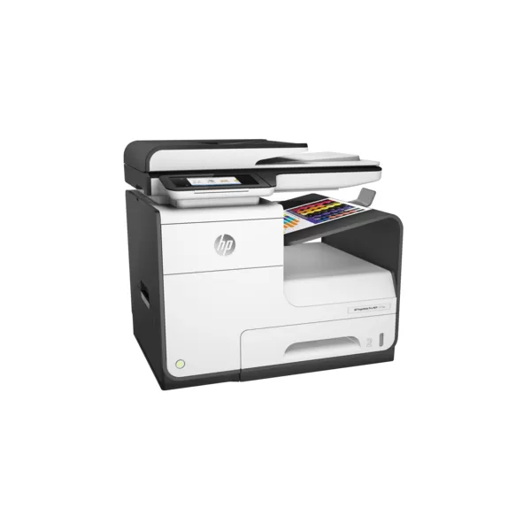 HP PageWide Pro 477dw MFP; Printer, Fax, Scanner, Copier, A4, max 55ppm black si color (40ppm ISO), fpo 6.5sec, max 1200x1200dpi mono, 2400x1200 dpi color, 768 MB RAM, HP PCLXL (PCL6), native PDF, HP Postscript Level 3 emulation, display color 10.92cm, tavi 50 + 500 coli, duplex; copy : max 40 cpm ISO, max 600 dpi, scalare 25-400%, max 99 copii; scan : ADF 50 coli duplex, max 25ipm mono si color, 24 bit adincime de culoare (color, 8 bit mono), scan to email, network folder, USB, SharePoint, PC; fax: 33.6kbps, color, max 203x196dpi, memorie max 100 pag mono, 8 pag color, fax-to-computer, 2 x USB host, USB 2.0 , GB Ethernet, Wireless 802.11 b/g/n, HP ePrint, HP Mobile Apps, Google Cloud Print v2, Apple AirPrint, Mopria-certified, Android Plug-in, Windows 10/8, Windows 10 Mobile, Chromebook, duty cycle 50.000pag, recomandat 750 – 4.500 pag, cartuse starter no.973 (3k BK, 1.5k C/M/Y); optional cartuse 973X (10k BK, 7k C/M/Y), tava 500 coli.