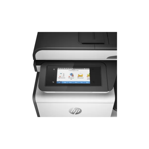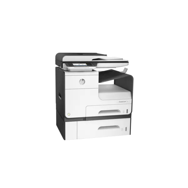 HP PageWide Pro 477dwt MFP; Printer, Fax, Scanner, Copier, A4, max 55ppm black si color (40ppm ISO), fpo 6.5sec, max 1200x1200dpi mono, 2400x1200 dpi color, 768 MB RAM, HP PCLXL (PCL6), native PDF, HP Postscript Level 3 emulation, display color 10.92cm, tavi 50 + 500+500 coli, duplex; copy : max 40 cpm ISO, max 600 dpi, scalare 25-400%, max 99 copii; scan : ADF 50 coli duplex, max 25ipm mono si color, 24 bit adincime de culoare (color, 8 bit mono), scan to email, network folder, USB, SharePoint, PC; fax: 33.6kbps, color, max 203x196dpi, memorie max 100 pag mono, 8 pag color, fax-to-computer, 2 x USB host, USB 2.0 , GB Ethernet, Wireless 802.11 b/g/n, HP ePrint, HP Mobile Apps, Google Cloud Print v2, Apple AirPrint, Mopria-certified, Android Plug-in, Windows 10/8, Windows 10 Mobile, Chromebook, duty cycle 50.000pag, recomandat 750 – 4.500 pag, cartuse starter no.973 (3k BK, 1.5k C/M/Y); optional cartuse 973X (10k BK, 7k C/M/Y)
