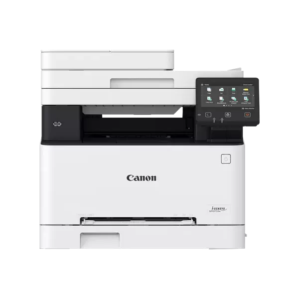 Multif. laser A4 color fax Canon MF657Cdw Canon i-SENSYS MF657Cdw, print/scan/copy/fax, A4, viteza de printare pana la 21 ppm alb-negru si color (12.7 ppm duplex), rezolutie imprimare max 1200x1200 dpi, fpo 10.4 sec mono, 10.5 sec color, memorie 1 GB, procesor 800MHz x 2, duplex print/scan/copy, LCD Colour Touch Screen 12.7 cm, limbaj de printare UFRII, PCL 5c, PCL6, Adobe PostScript3; copiere 21 ppm (12.7ppm duplex) , fcot ADF 11.4 sec mono, 13.4 sec color, fcot platan 123. sec mono, 14.5 sec color, pana la 999 copii, rezolutie 600x600 dpi, marire-micsorare 25-400%; scanner: color, DADF 50 coli single-pass, rezolutie optica 600x600 dpi, enhanced 9600x9600 dpi, viteza scanare simplex/duplex mono 27ipm / 47ipm (300x600dpi), color 14ipm / 27ipm (300x600dpi), 24 bit, scan to USB memory key / email / PC / FTP / cloud; fax: 33.6kbps, 3 sec/pag, ultrafine 400x400 dpi, max 512 pag memory, 281 speed dials; tava hartie 250 coli + manual 1 coala; interfata USB 2.0 Hi-Speed, 10BASE-T/100BASE-TX/1000Base-T, Wireless 802.11b/g/n, conexiune Wireless Direct; imprimare securizata, de pe USB (JPEG/TIFF/PDF), Google Cloud Print, iOS AirPrint, Android certificare Mopria, Canon Print Service, Canon PRINT Business, duty cycle max 30.000 pagini/luna, recomandat 250 - 2.500 pag/luna, tonere starter in-box 1.350 pag black, 680 pag C/M/Y, consumabile ulterioare: 067B (1.350 pag), 067HB (3.130 pag), 067C/M/Y (1.250 pag), 067HC/HM/HYC (2.350 pag), accesorii : Tel6KIT, Barcode Printing Kit-E1E, Send PDF Security Feature Set-E1. Inlocuieste MF645Cx OEM:5158C001AA