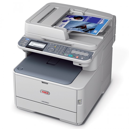 MC562dnw - copiator, imprimanta, scanner, fax - color, duplex, A4, 26ppm/cpm color, 30ppm/cpm mono, ProQ 2400 dpi, fax Super G3, PCL6, PS3, 256Mb, 533MHz, tava 250+100 coli, scanner color 1200X1200dpi, RADF-50, 60.000 pag/luna, USB+Eth.10/100BaseTx+wireless