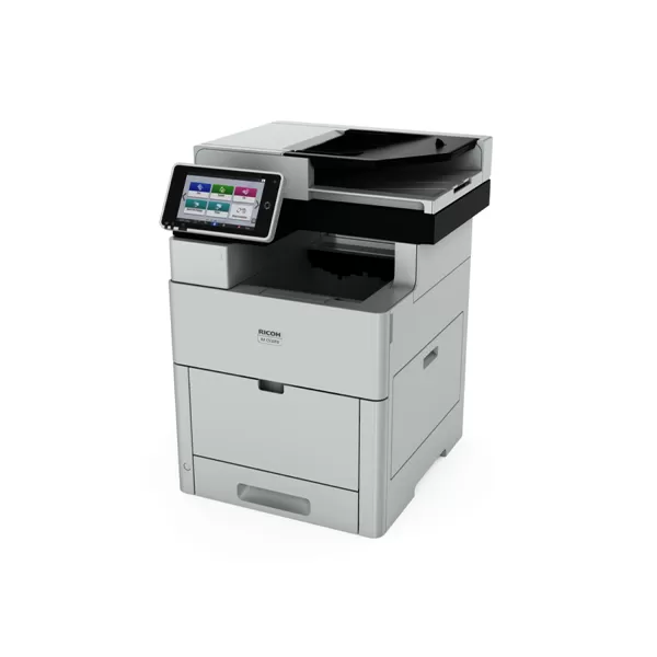 IMC530FB, mfc A4 color, 53ppm, 20ppm in duplex la printare, copy/print/scan/FAX, single pass SPDF 100 coli, 2400dpi, PCL5 si 6/PS3/PDF, fpo 4.2s color/4s mono, fco 6.6s color - 6.5s mono, procesor 1,2GHz, memorie 2GB+32GB eMMC, alim 150+550 coli (max 3250), iesire 400 coli, duty 158k/luna, recomandat 10000p/luna, tonere start 7500p black, 4500p color, USB/Ethernet/Wi-Fi, port USB frontal, display touch 7", scan speed 46ipm/71ipm duplex, warm up 39s, consumabile: toner black 418240 (20,5k), cyan 418241 (18k), magenta 418242 (18k), yellow 418243 (18k), waste 418255 (30k), dimensiuni: 47x50,3x64,4 cm, greutate 38kg, garantie 12 luni, on site.
