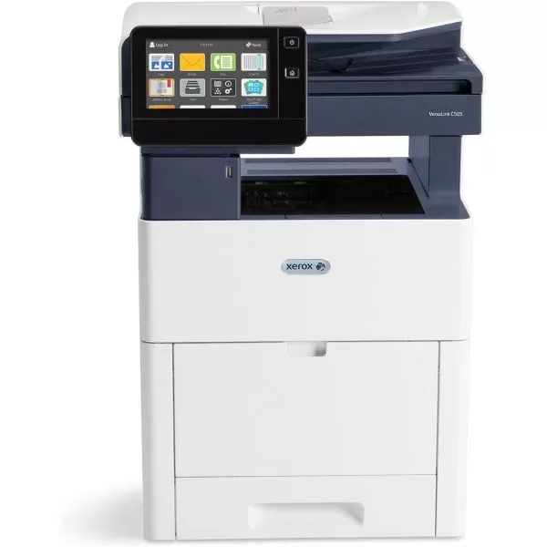 Xerox VersaLink C505X, print/scan/copy/fax, A4, print: 43 ppm mono/color, max 1200x2400dpi, fpo 9 sec mono/color, procesor 1.05 GHz Dual-Core, 4GB RAM, 250GB HDD, limbaje PCL5e/PCL 6/PDF/XPS/TIFF/JPEG/HP-GL/AdobePostScript3, LCD touch rotativ 5"; tava 150+550 coli (max 2.900 coli), iesire 400 coli, duplex; copy: DADF 100 coli, 43 cpm simplex/duplex, max 600 x 400 dpi, fco 7 sec color, 5 sec mono, scalare 25 - 400%, max 999 copii; scan : max 40 ipm simplex mono/color, 69 ipm mono duplex, 52 ipm color duplex, 600 x 600 dpi optic, scan to home, USB, email, network; fax: 33.6 kbps, memorie 4MB, max 600 x 600 dpi; conectivitate : Ethernet 10/100/1000 Base-T, USB 3.0 de mare viteza; imprimare mobila : Apple AirPrint, Google Cloud Print, Xerox Print Service Plug-in pentru Android, Mopria Print Service Plug-in pentru Android; ciclu lunar max 120.000 pag, recomandat max 8.000 pag/luna, tonere in-box 5k Bk, 2.4k CMY, ulterior toner negru 106R03880 (5k), 106R03887 (12.1k), tonere C/M/Y 2.4k (106R03877/8/9), 5.2k (106R03881/2/3), 9k (106R03884/5/6), drum C/M/Y/Bk 40k (108R01481/2/3/4), cartus de toner rezidual 30k (108R01416); optional wireless (497K16750), tava 550 coli (097S04949), tava 2.000 coli (097S04948), dulap (097S04955), stand/roti (incluse cu alimentatorul de mare capacitate si dulapul) 097S04954, Kit de productivitate cu unitate HDD de 250 GB (497K18360)